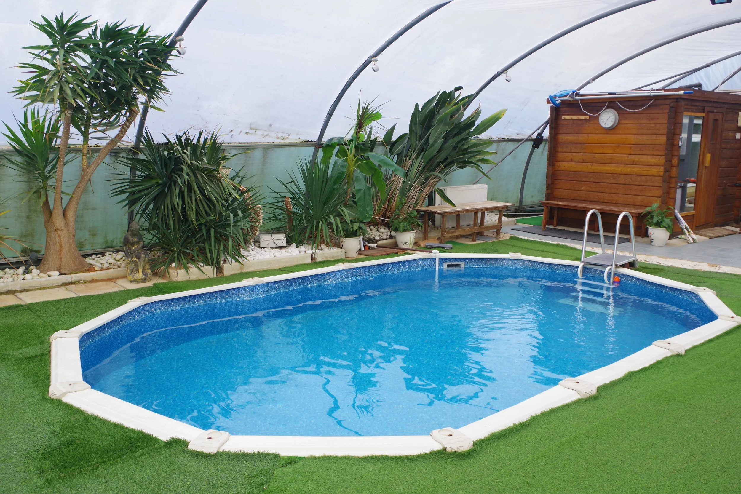 There are many naturist clubs in the UK and naturist events, the best way to search for one local to you is through British Naturism (www.bn.org.uk) We have stayed many times at Clover Spa a naturist spa hotel near Birmingham, Tim and his team make you feel very welcome. cloverspa.co.uk its a perfect place to relax a fantastic spa with sauna, steam room, heated loungers, cold plunge and large outdoor jacuzzi. Also you can have a relaxing massage or treatment. Max’s Garden is a small campsite in West Sussex it has 6 camping pitches catering for motorhomes, tents and campervans. The main area has a large heated tropical poly-tunnel with a swimming pool, sauna, and jacuzzi. The area behind the poly-tunnel is a great sun trap. Below are some pictures from Max’s Garden.